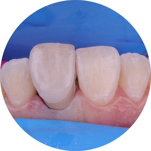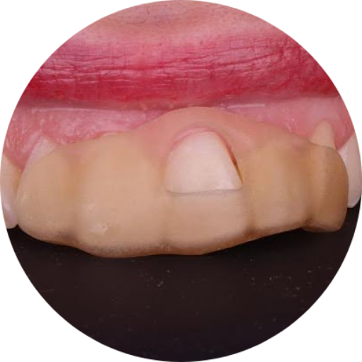 Réalisation d’une facette provisoire fixe, permettant de protéger la dent en attendant la fabrication de la facette définitive par la céramiste.